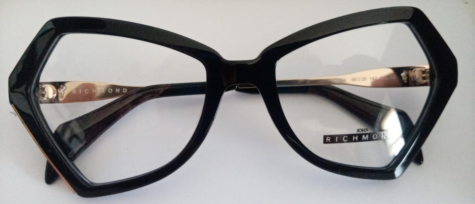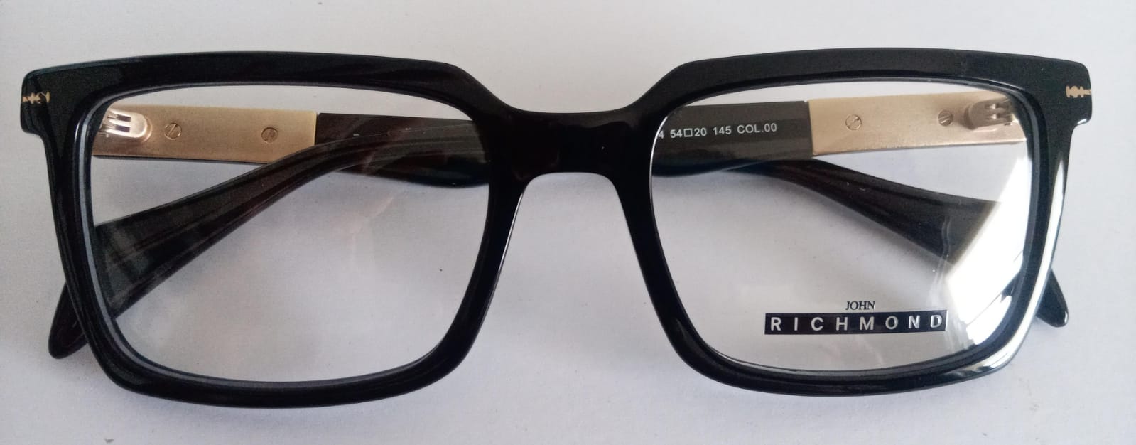 JOHN RICHMOND - RIV.234.00 - BLACK FRONT AND TIP SHINY GOLD METAL TEMPLE PLASTIC FRAME