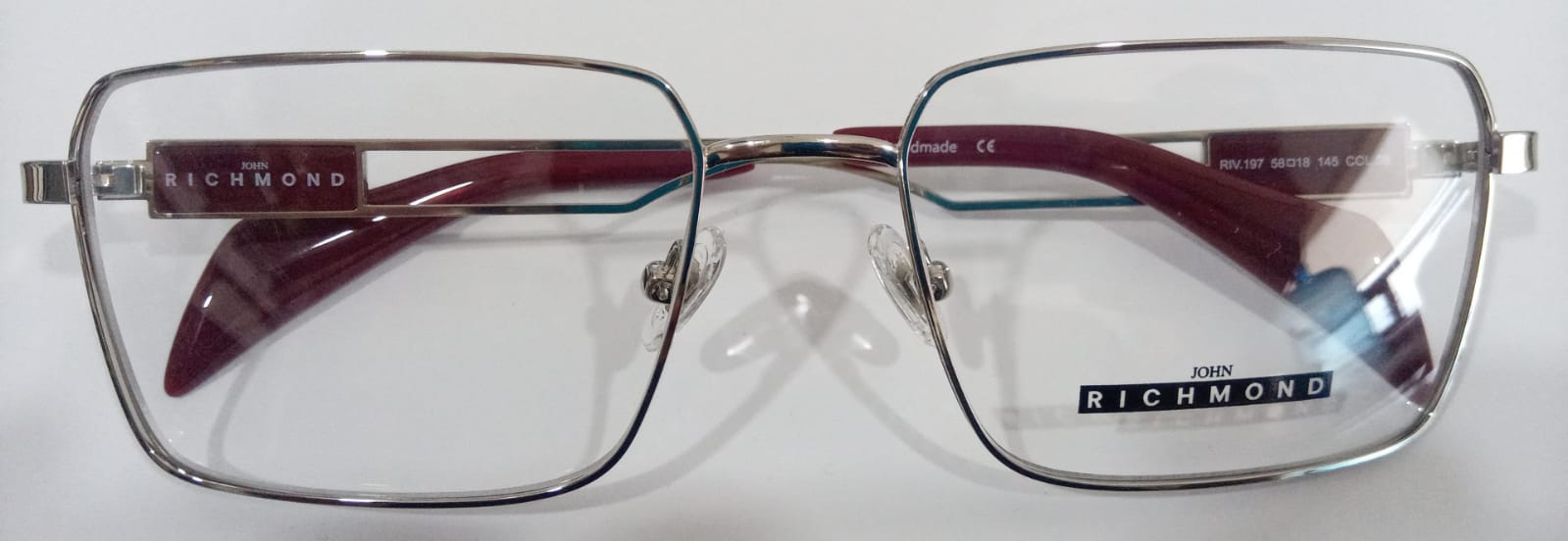 JOHN RICHMOND - RIV.197.08 - SILVER FRONT AND TEMPLE FULL BORDEAUX PLASTIC TIP METAL FRAME