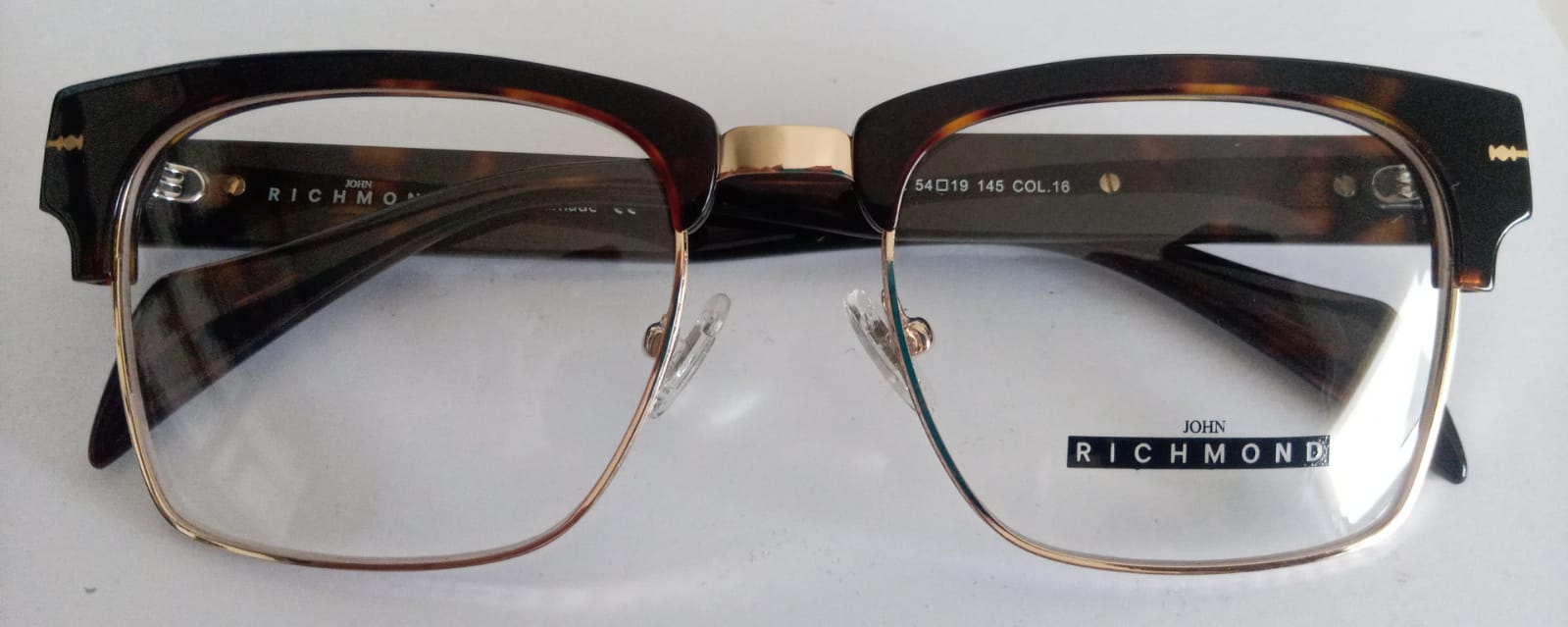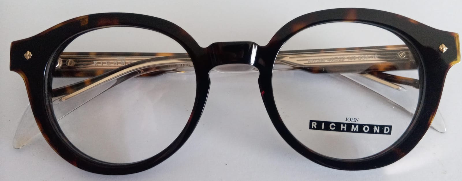 JOHN RICHMOND - RIV.212.16 - DARK AVANA CILIARS AND TEMPLE SHINY GOLD METAL FRONT PLASTIC FRAME