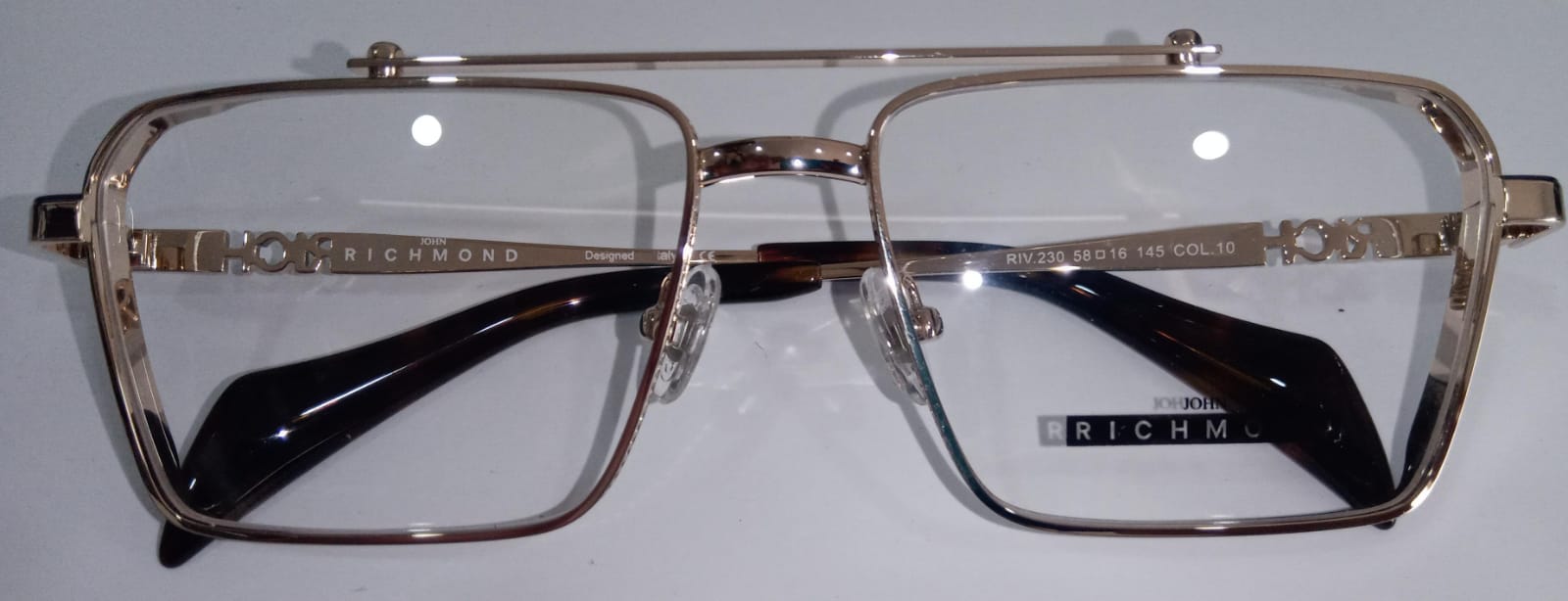 JOHN RICHMOND - RIV.195.10 - SHINY GOLD/BLACKFRONT AND TEMPLE DRK AVANA PLASTIC TIP METAL FRAME