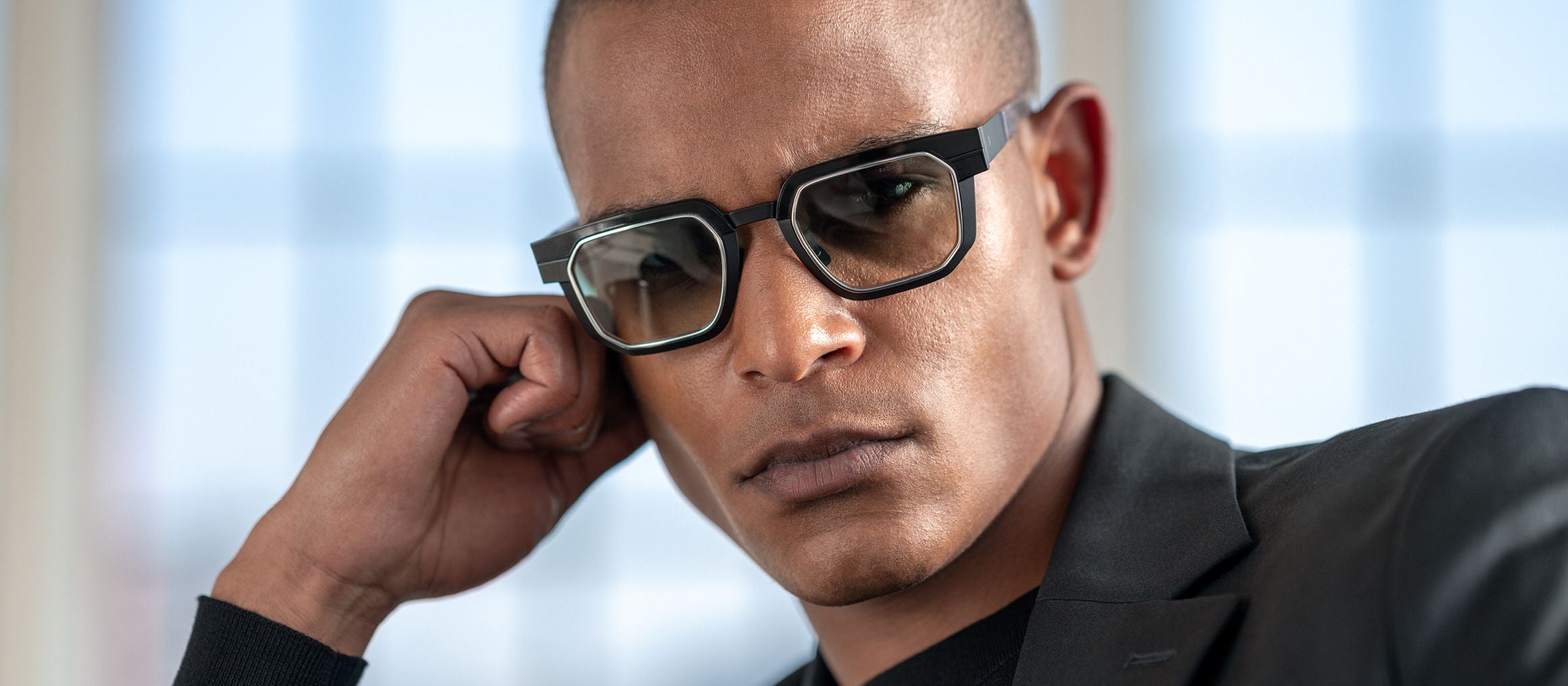 Blackfin PROMETHEUS 51 24 Col. 1819 (OBSIDIAN BLACK GOLD TITANIUM FRAME/SHINY SILVER DETAILS/EMERALD HAZE RADIANT LENSES)